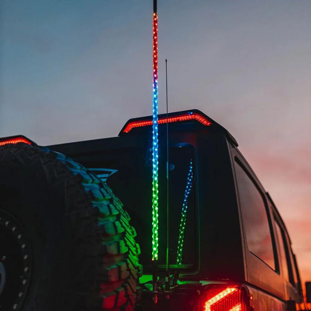 Dessa LED whip lights går att montera på allt från ATV och buggys till vanliga bilar med ett riktigt effektfullt ljus som resultat. Perfekt på terrängfordonet eller driftingbilen!